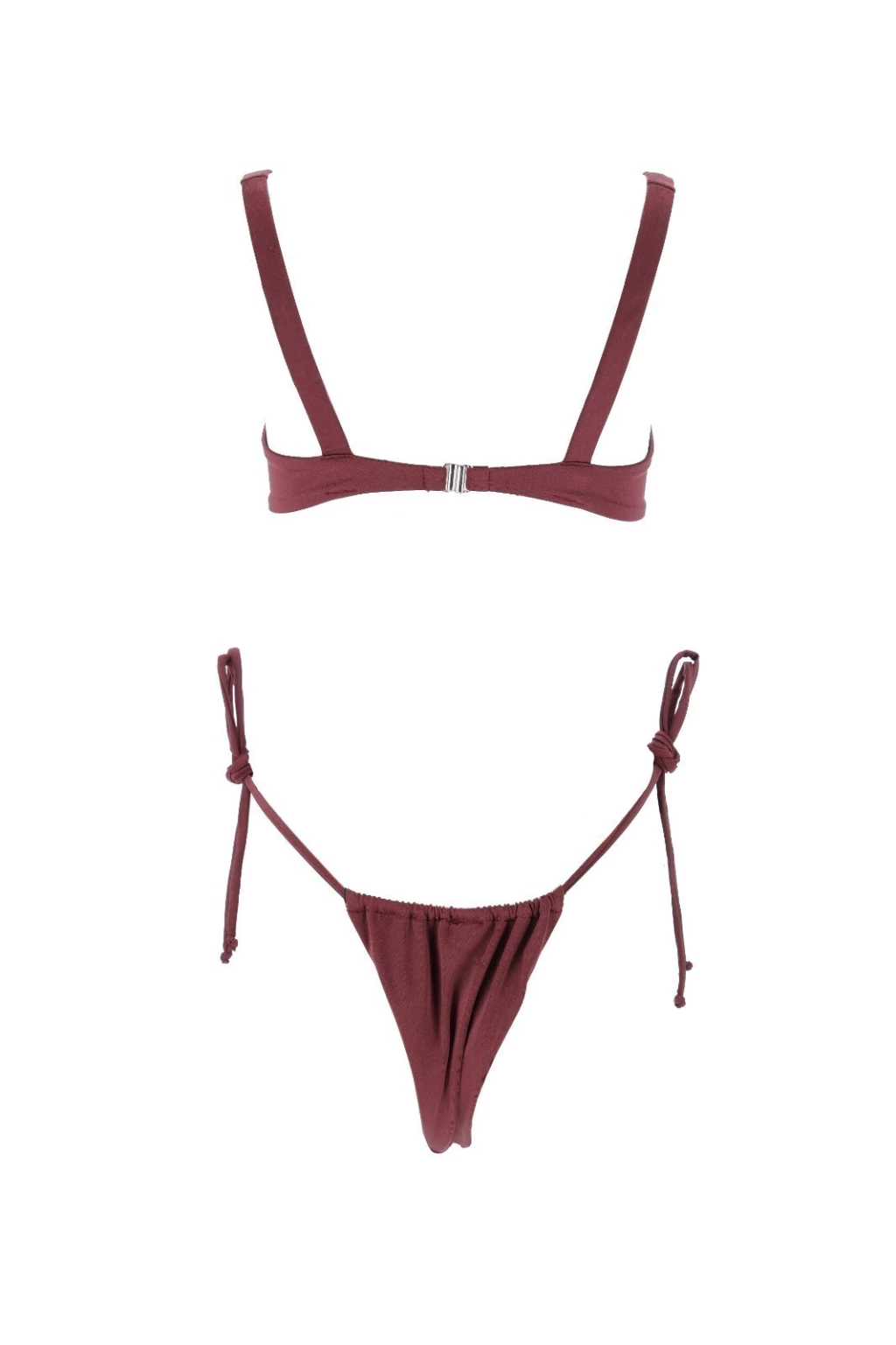 Bombacha vedettina alta clásica, cavado delantero igual que el trasero, o bombacha less frunce con tiras en los costados.