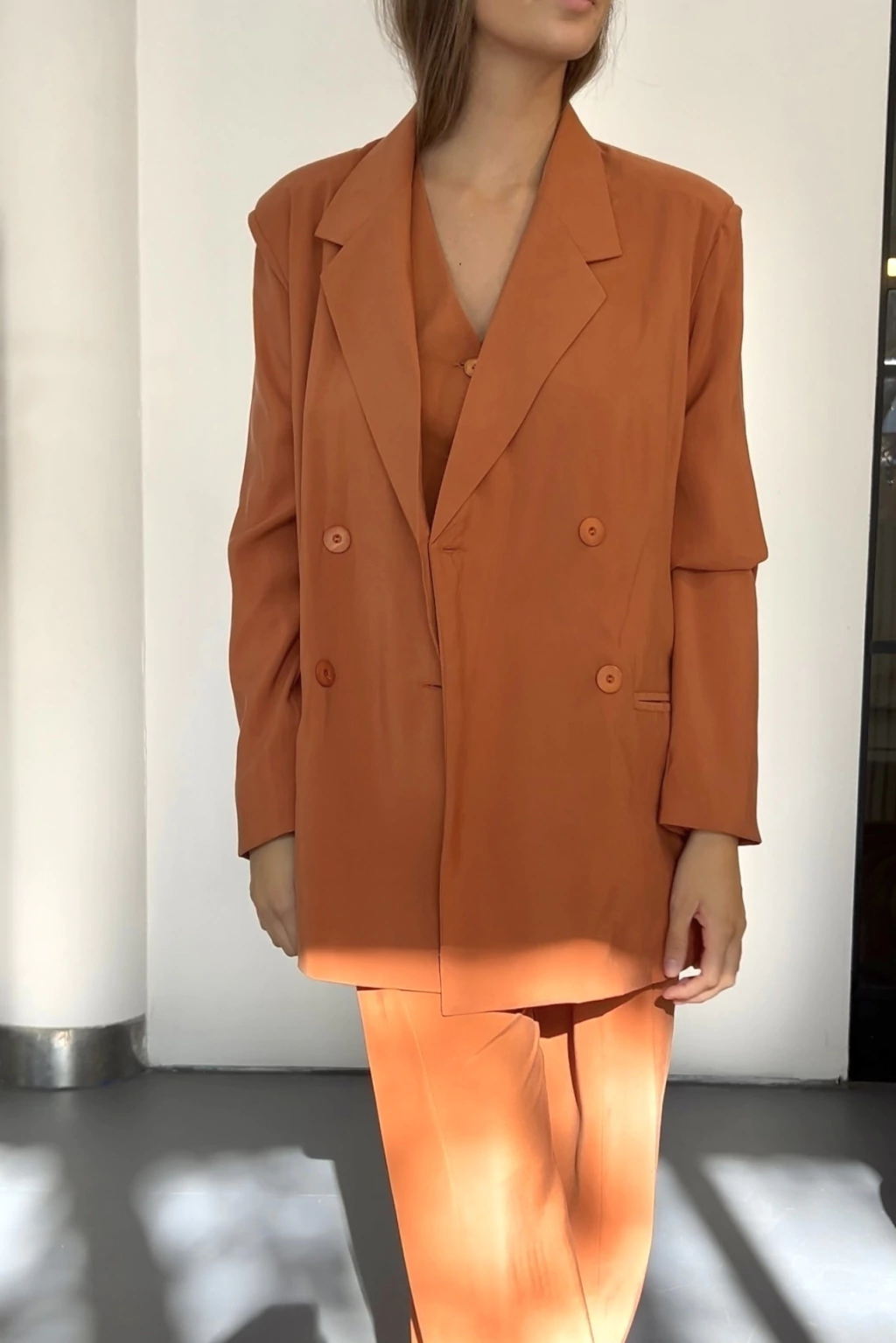 Blazer sastrero de vestir, corte recto, con abotonadura cruzada , confeccionado en twill premium. Bolsillos delanteros, forrado con tafeta al tono. El twill es una tela sastrera liviana que tiene una caída pesada y mucho movimiento.