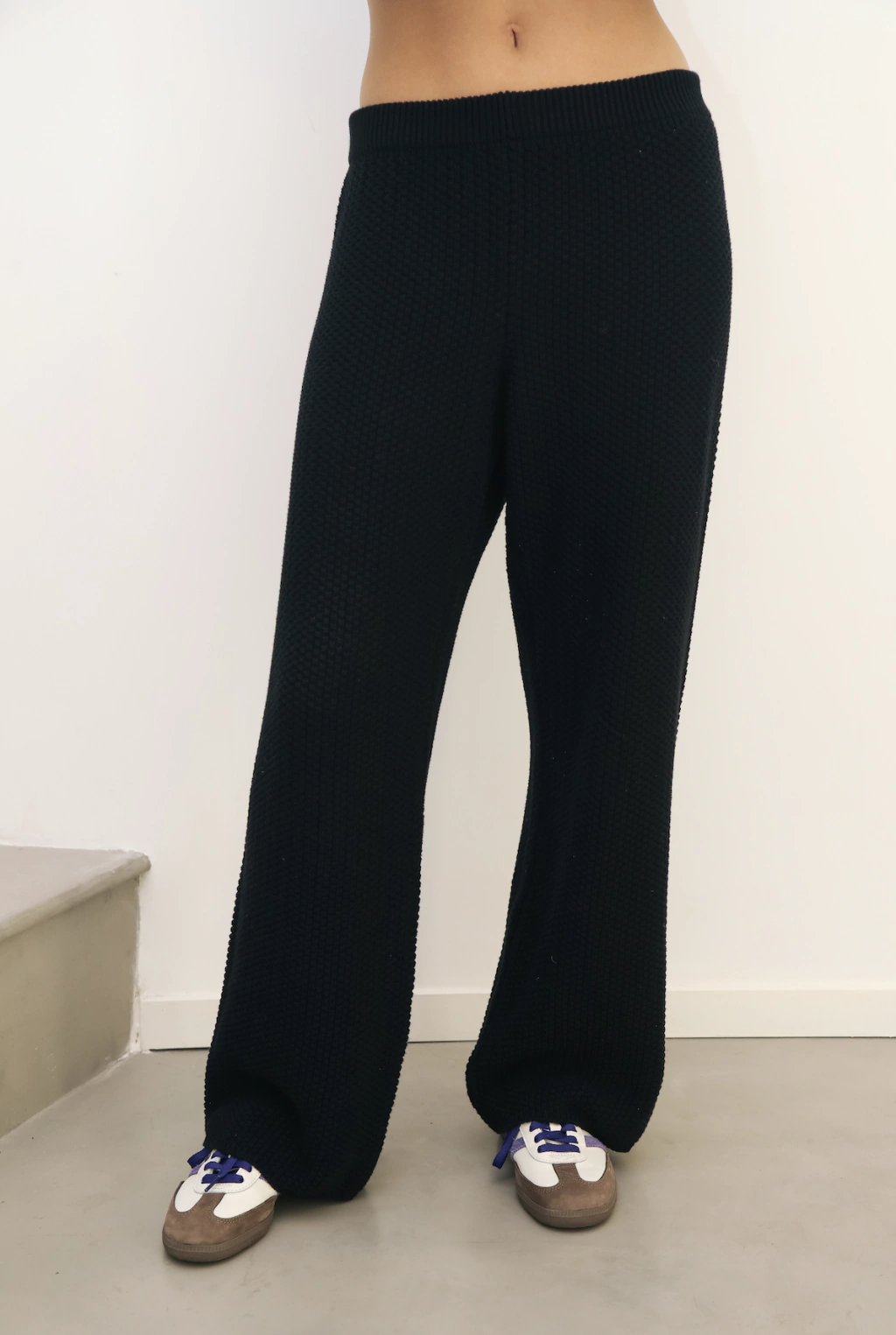 Su diseño exclusivo presenta un elástico en la cintura que proporciona un ajuste perfecto y cómodo. Además, el punto arroz le otorga una textura diferenciada, añadiendo un toque de distinción a su atuendo.